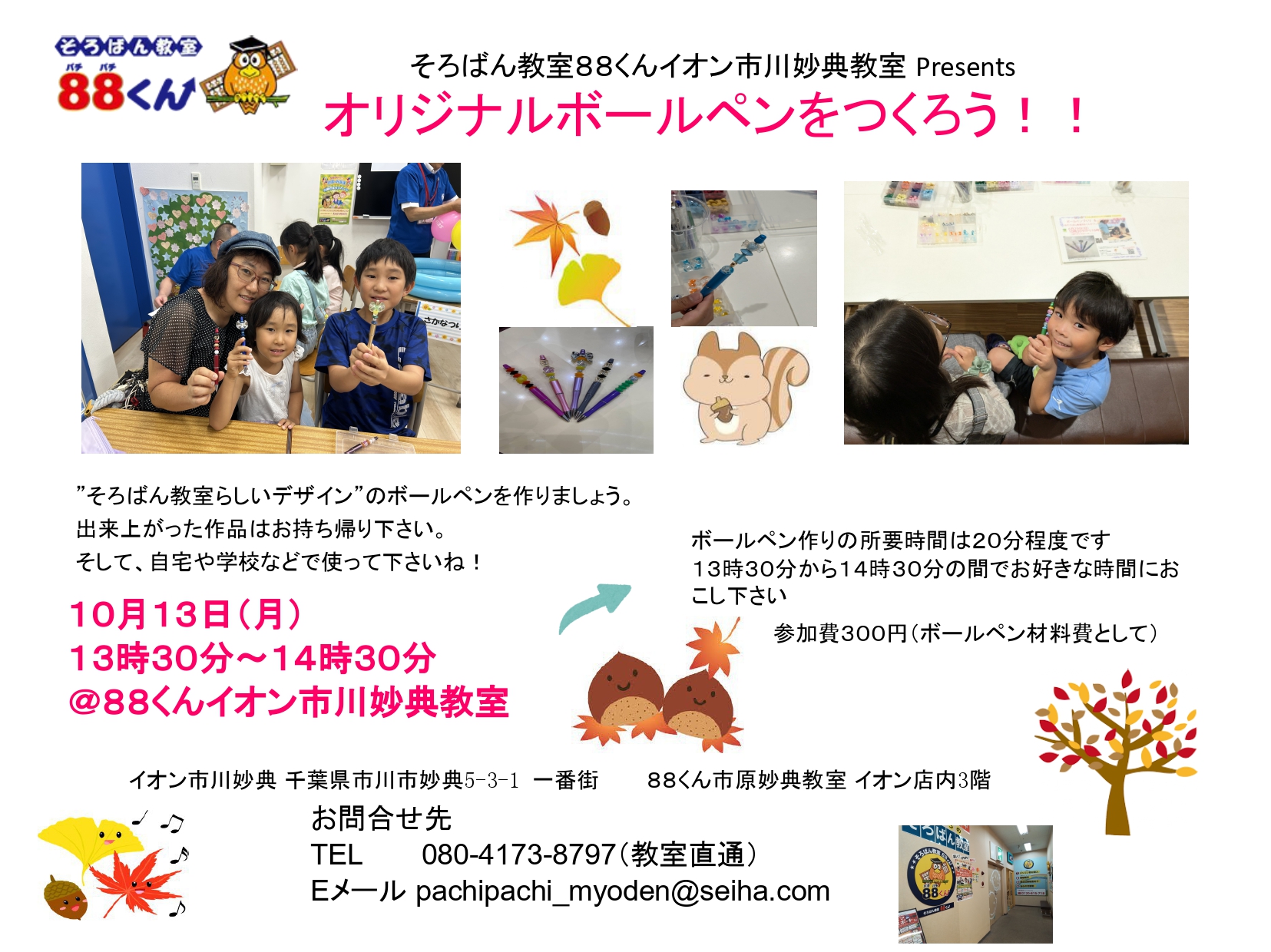 そろばん教室88くん・イオン市川妙典教室ではオリジナル・ボールペン作りを開催します。