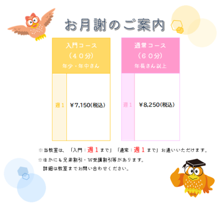 | 教室開校日 | 月 ・ 火 ・ 木 ・ 日 |