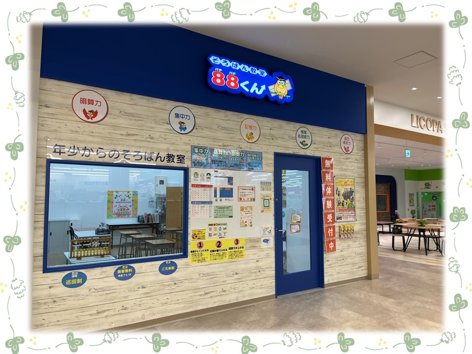 私が6年間そろばんに通って習得した計算力は一生の宝(財産)となっています。将来、88くんに通って良かったと思えるようにご指導させていただきます。