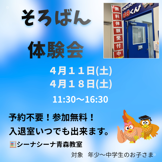| 教室開校日 | 水 ・ 金 ・ 土 ・ 日 |