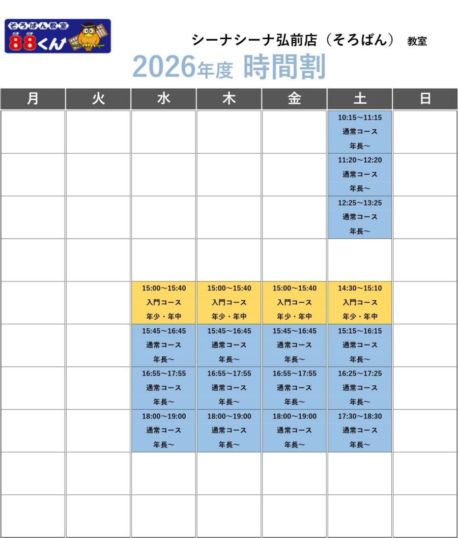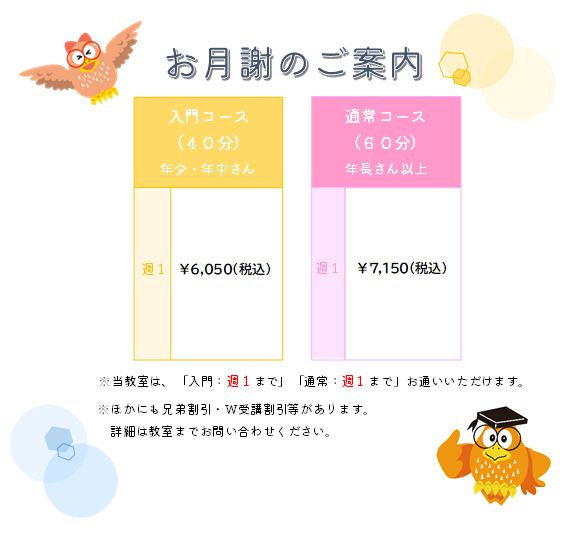| 教室開校日 | 水 ・ 木 ・ 金 ・ 土 |