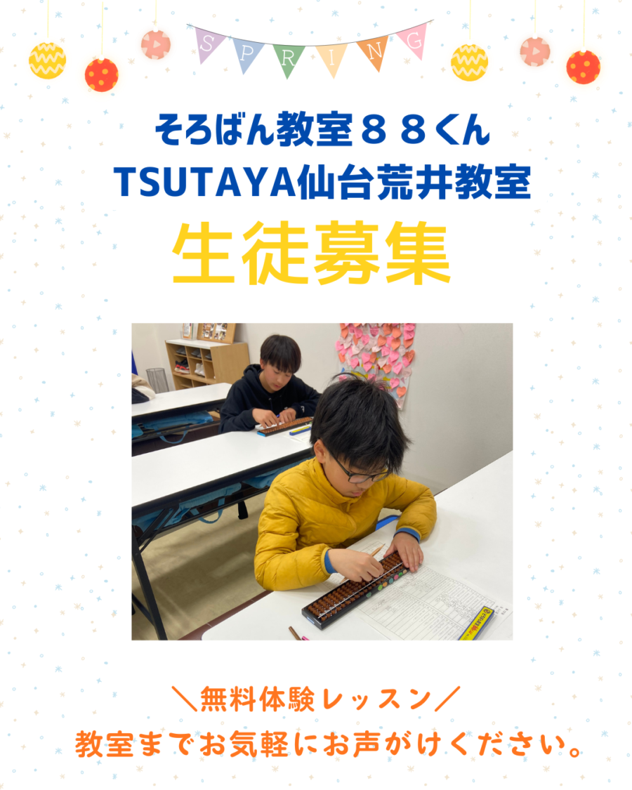 そろばんを通して、『考える力』『できた喜び』『あきらめない心』を育ててみませんか。