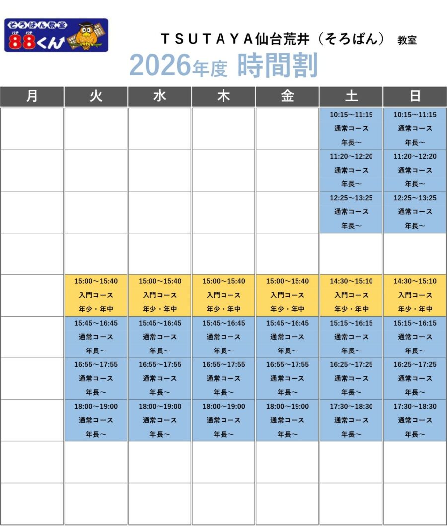 | 教室開校日 | 火 ・ 水 ・ 木 ・ 金 ・ 土 ・ 日 |