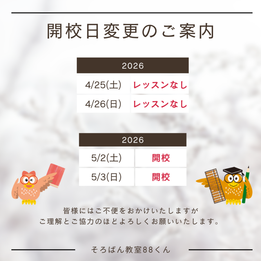 | 教室開校日 | 月 ・ 火 ・ 木 ・ 土 ・ 日 |