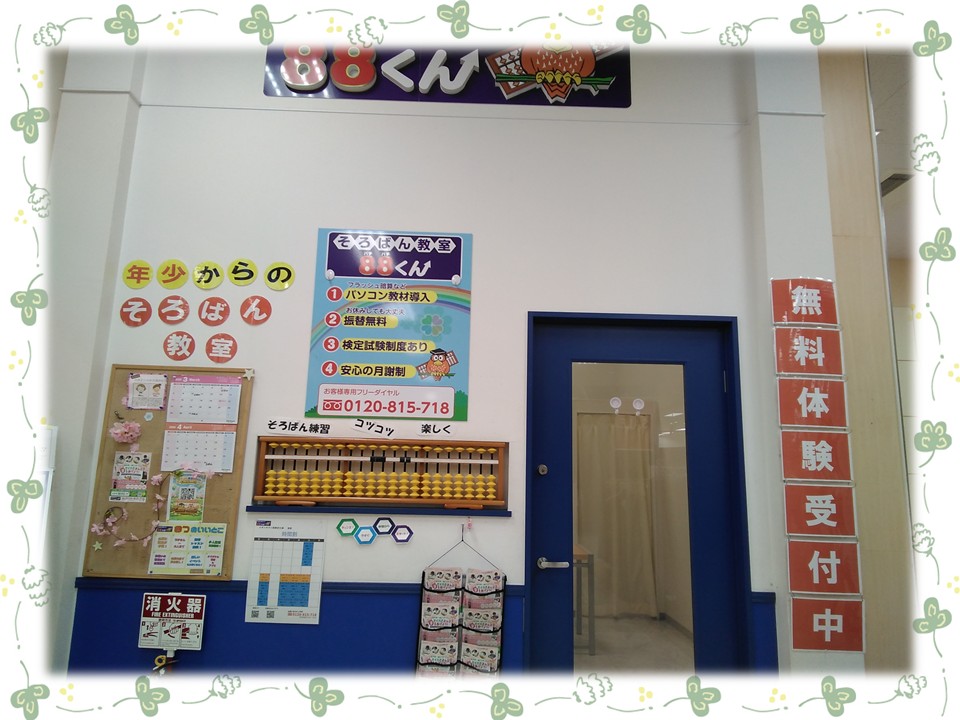 88くんでは楽しくお子様が通っています。教室で復習を繰り返し行うことや、わからないところ質問できます。そろばんでの計算力、暗算力は生涯とても役立つと確信しております。ぜひ、お子様とご一緒に体験いらして下さいませ。