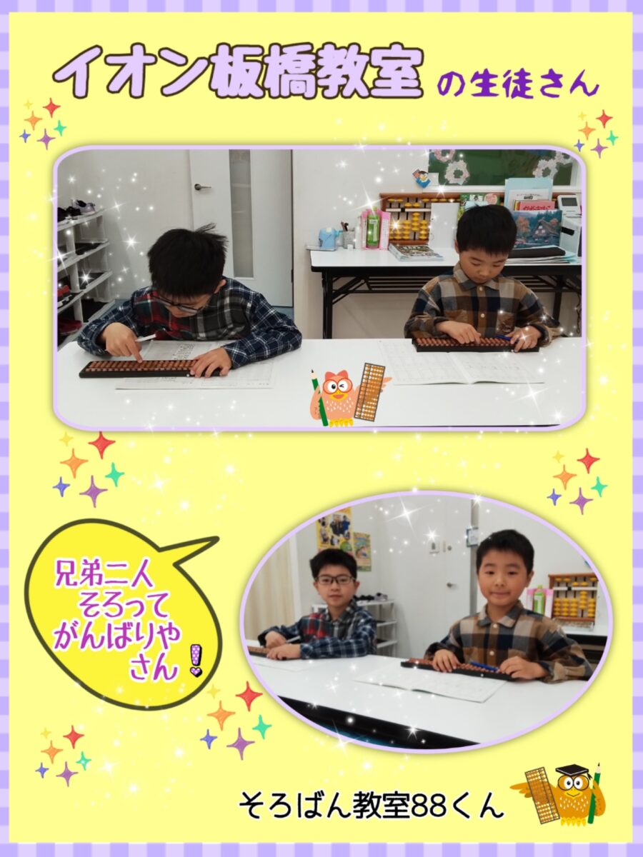 私は、集中力、地道に努力することの大切さや、ポジティブ思考になれたのは、そろばんに出会えたからです。そろばんを通して、いろいろな個性を伸ばしてみませんか。そろばんに興味がございましたら、体験にいらして下さい。