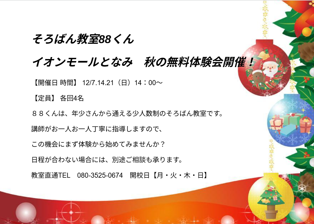 | 教室開校日 | 月 ・ 火 ・ 木 ・ 日 |