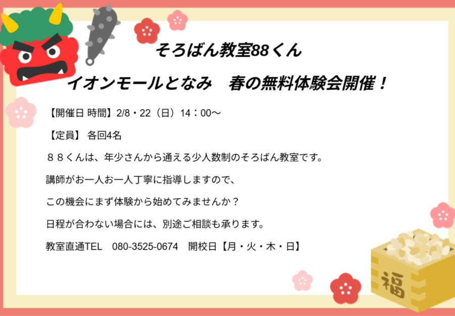 数学と仲良くなる!算数が好きになる!計算力や集中力が身につく!いいこといっぱいのそろばん、一緒に楽しく学びましょう。