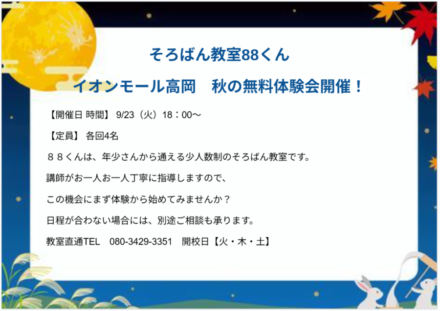 集中力・記憶力・発想力・そろばん式暗算力が養われ、「右脳の活性化」に威力を発揮します。まずは体験から始めてみましょう。