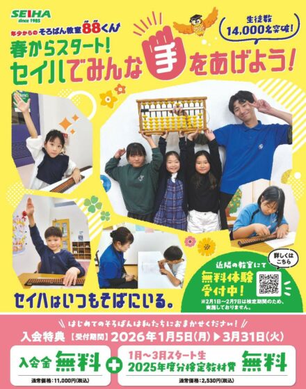 レベルアップを実感できるそろばん学習を、寄り添い応援していきたいと思います。