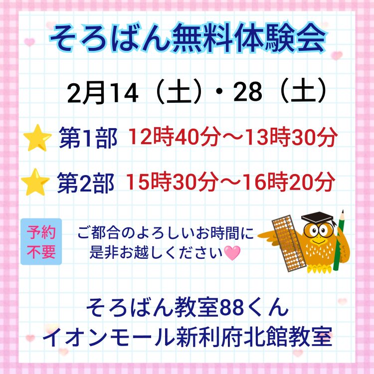 そろばんは集中力が身につきます。一緒に楽しく学びましょう!