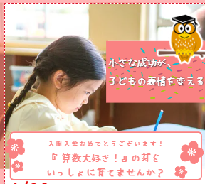 『そろばんを習うことで、計算力、記憶力、集中力が培われます。むずかしいと思っていた計算が、簡単に出来るようになっていく楽しさを味わっている子が教室にはたくさんいます。一緒にパチパチしましょう!』