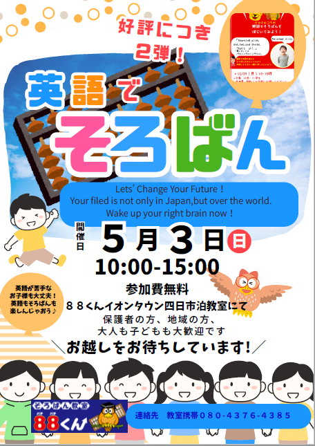 数字は世界共通!そろばんに強くなり世界へはばたきましょう!